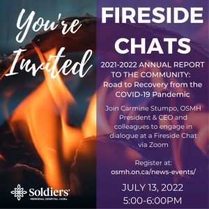 oldiers’ Memorial Hospital (OSMH) is extending an invitation to the community to engage in dialogue at its virtual Fireside Chat on the evening of Wednesday July 13th.